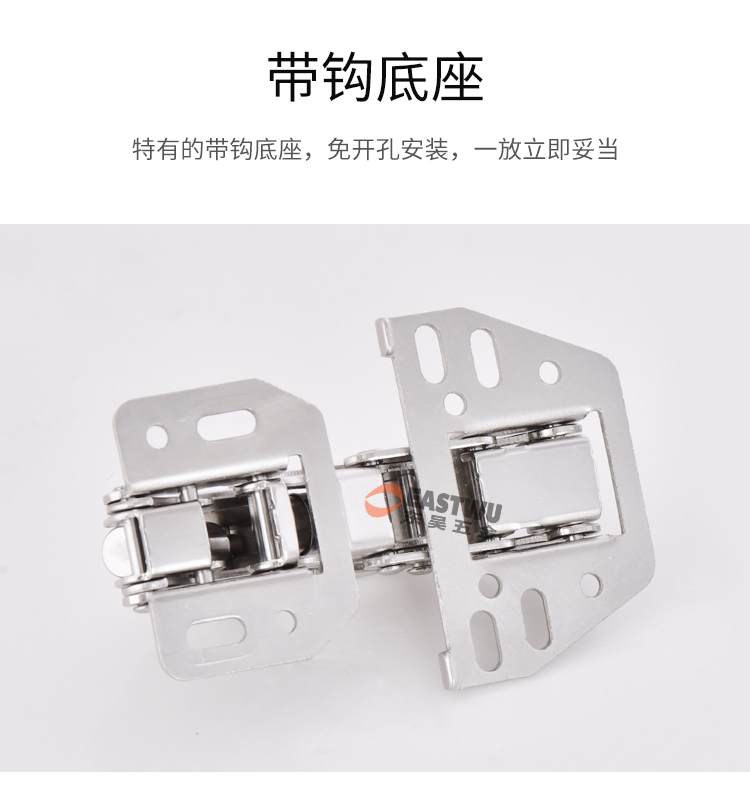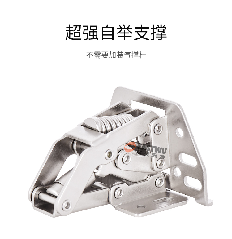 冷軋鋼普通吊柜鉸鏈 免開孔 無需加裝氣撐 柜門自動撐起 適用門厚8-20mm 開啟角度90° 使用范圍房車吊柜、衣柜等