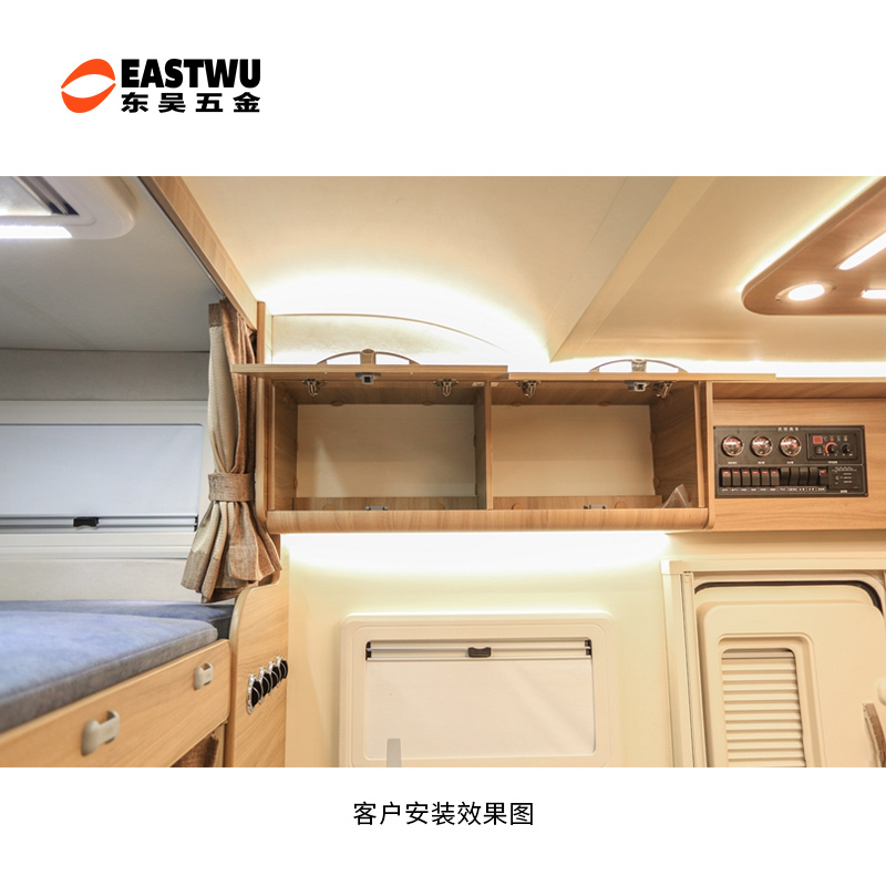 冷軋鋼液壓緩沖吊柜鉸鏈 靜音緩沖 免開孔 無需加裝氣撐 柜門自動撐起 適用門厚8-20mm 開啟角度90° 使用范圍房車吊柜、衣柜等
