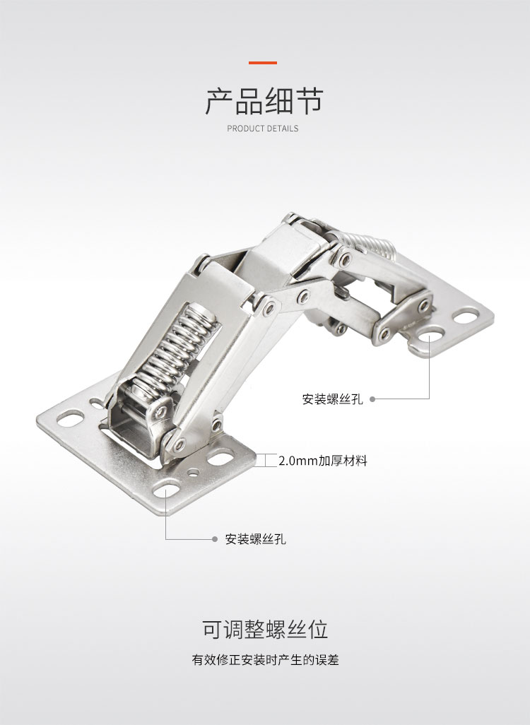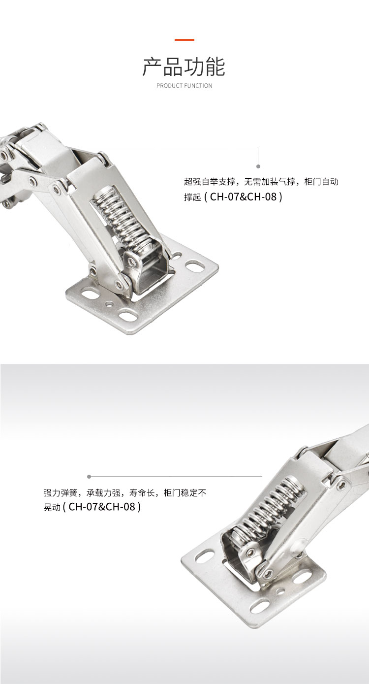 特點(diǎn):無(wú)需加裝氣撐,柜門就能被鉸鏈撐起