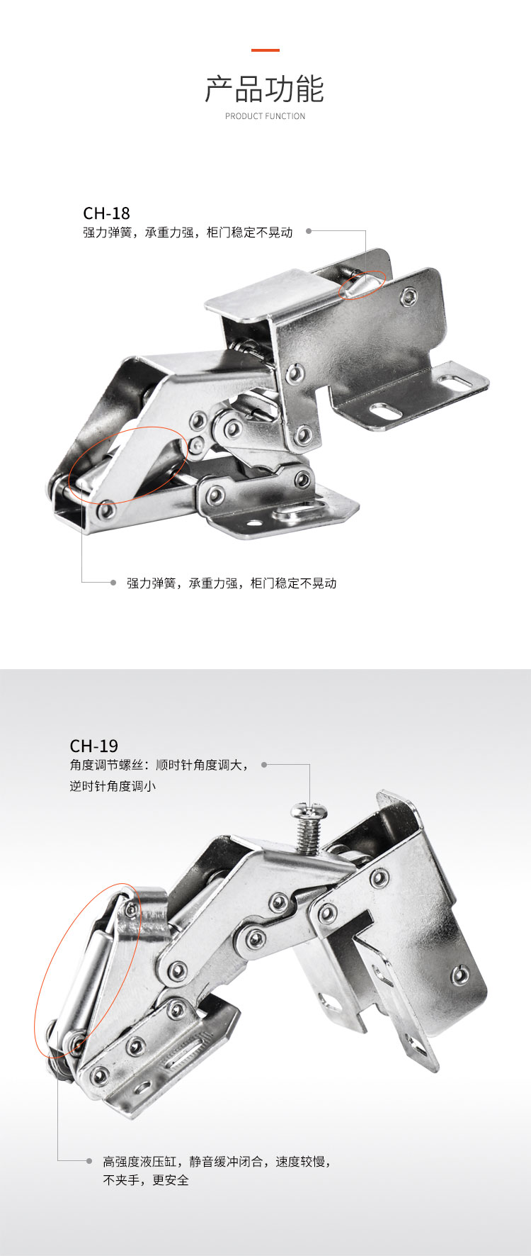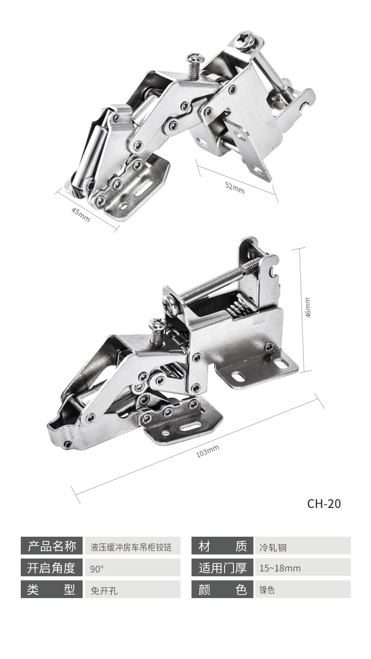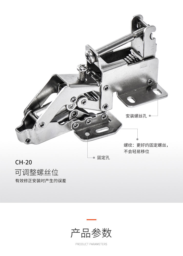 材質(zhì)冷軋鋼,鎳色,開(kāi)啟角度90°,適合門厚15-18mm,適用于90°轉(zhuǎn)角柜,層疊門板安裝,開(kāi)啟L型,帶調(diào)節(jié)力度和開(kāi)啟角度螺絲