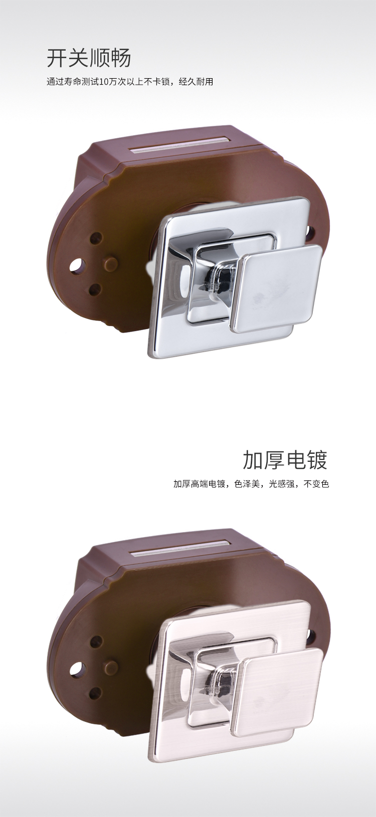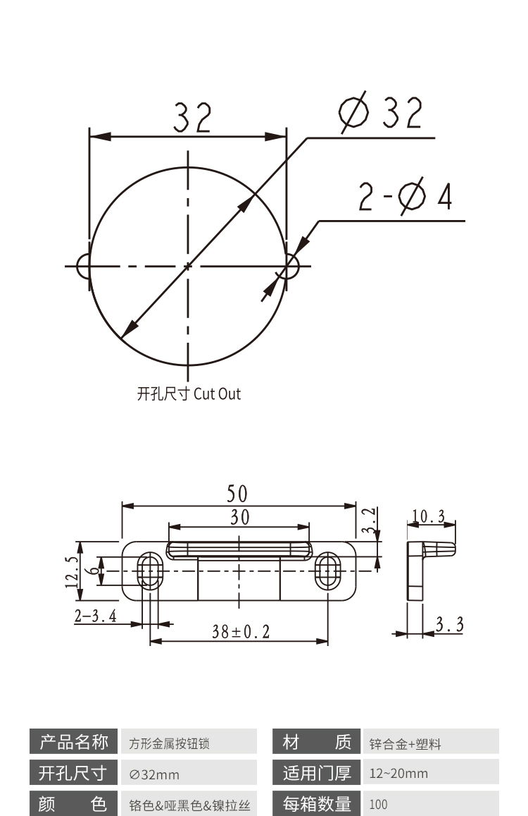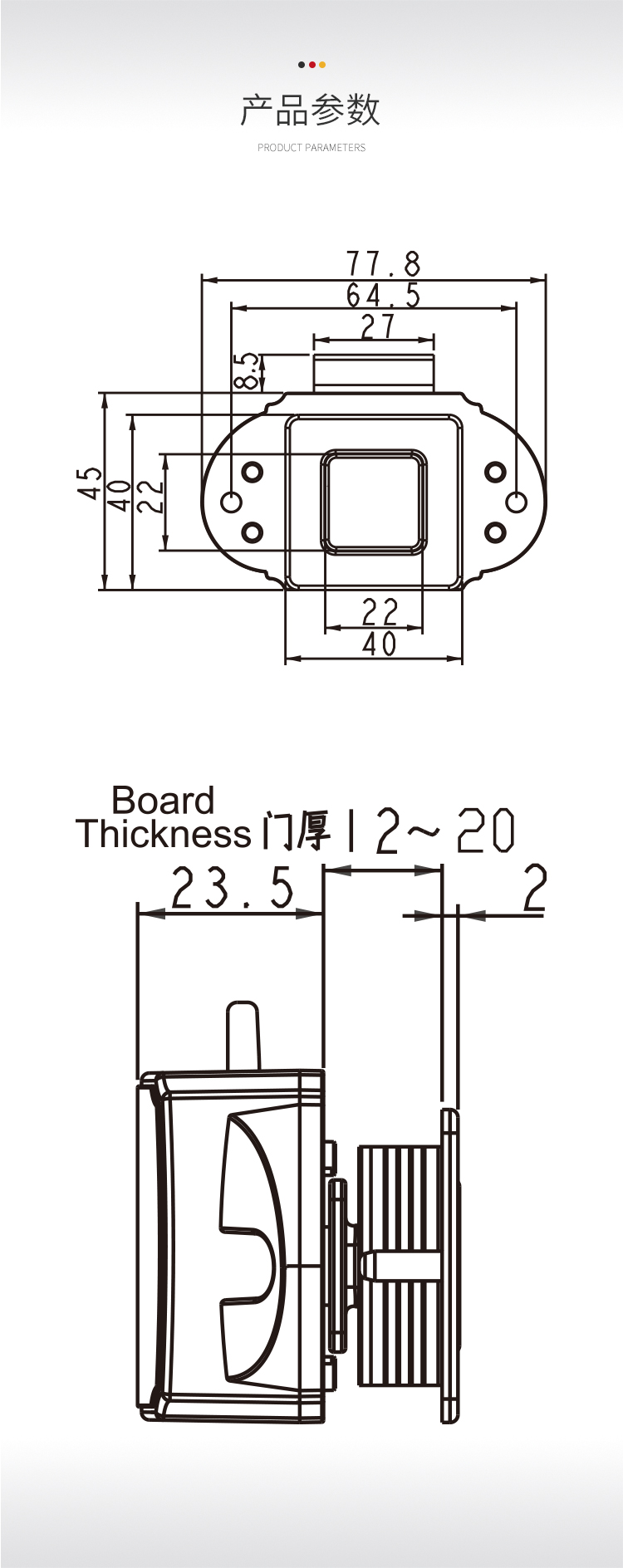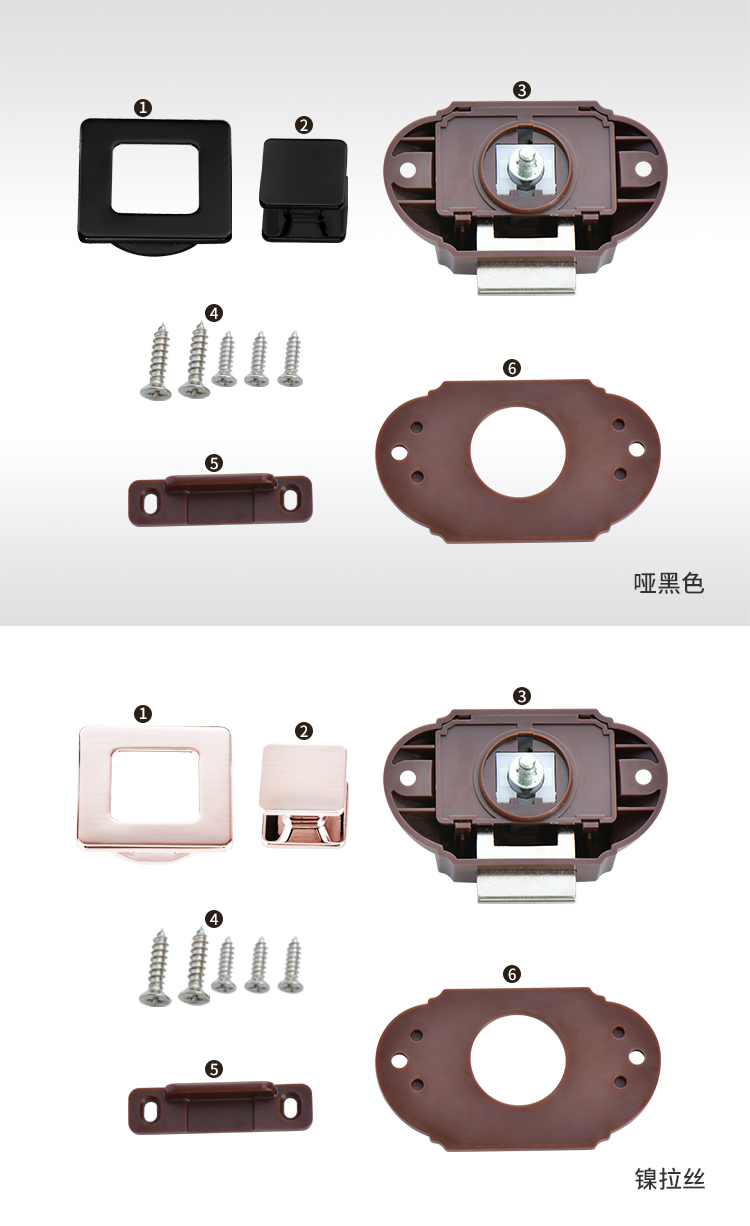 ·適用于房車、旅居車、救護車、改裝車、吊柜、櫥柜、抽屜可避免在行駛過程中家具門打開 ·材質:鋅合金&塑料 門板厚度:12~18mm 開孔尺寸:Φ32mm
