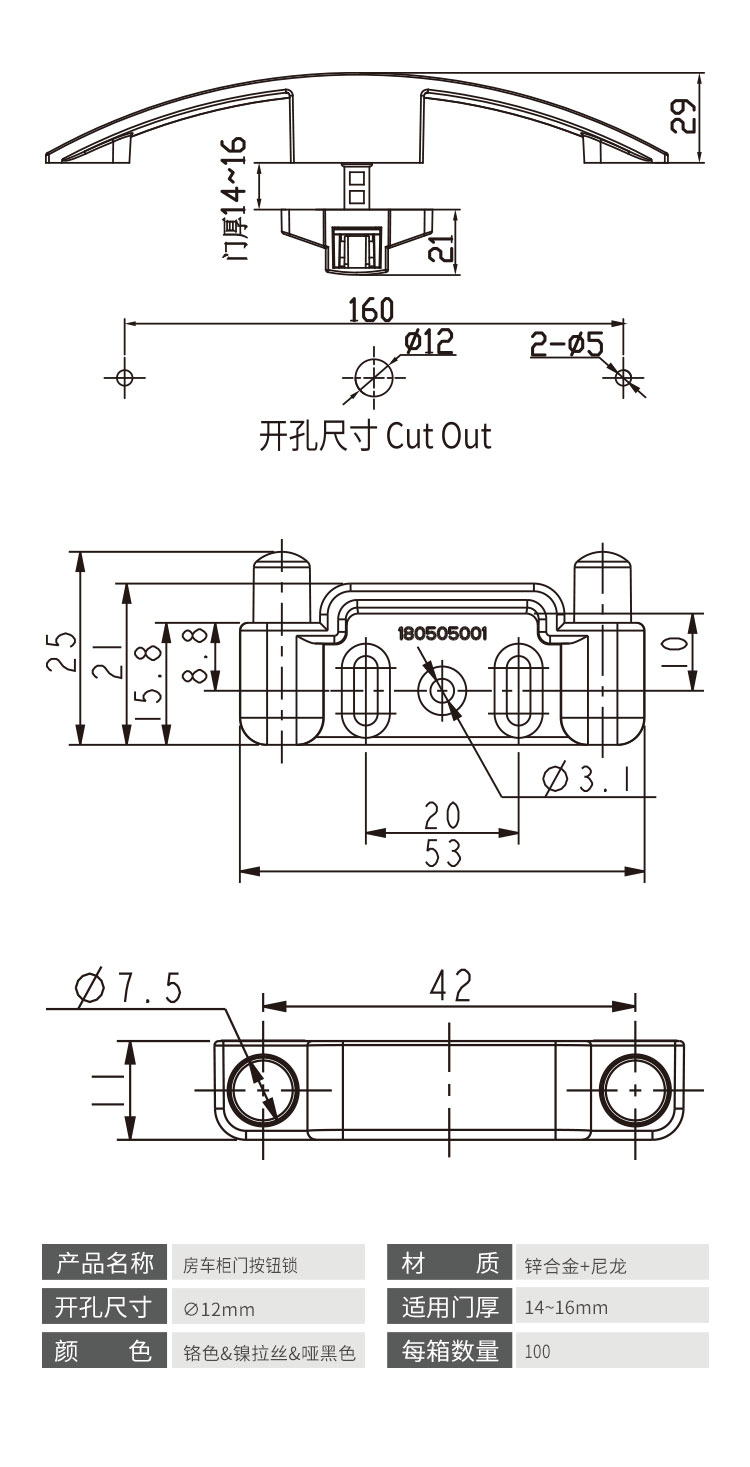 四色可選,尼龍材質(zhì),中心孔距56MM,適用門板厚度10-25MM每箱300套..