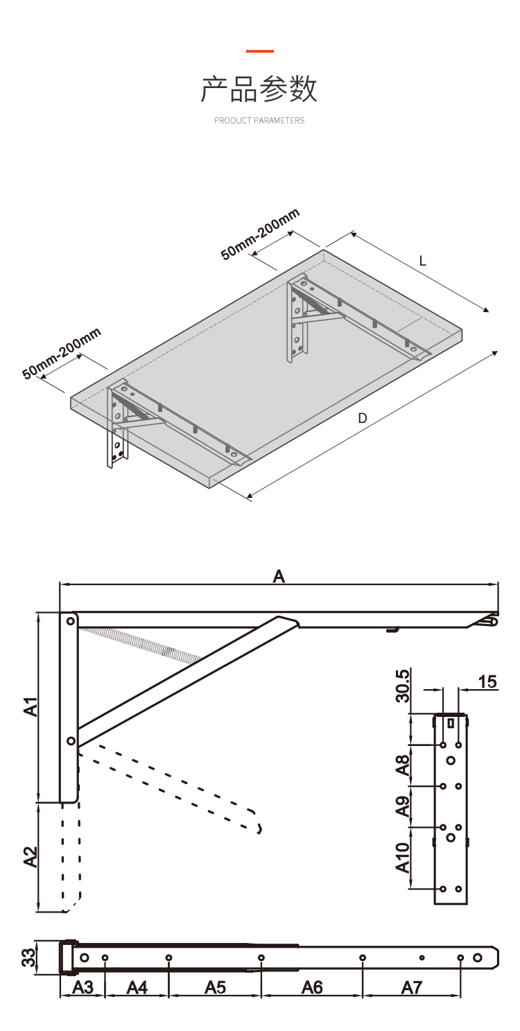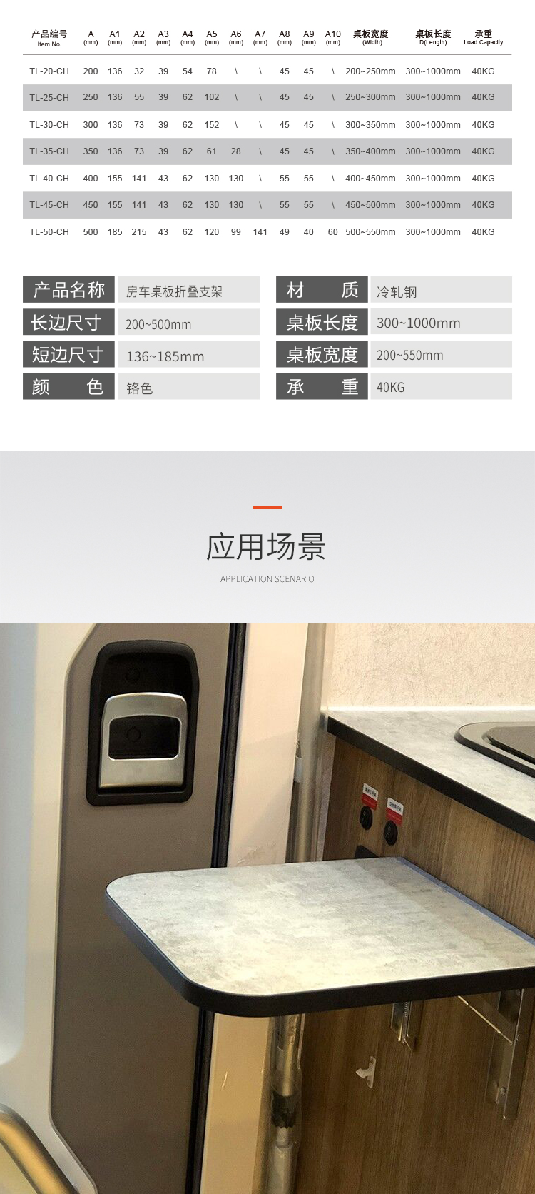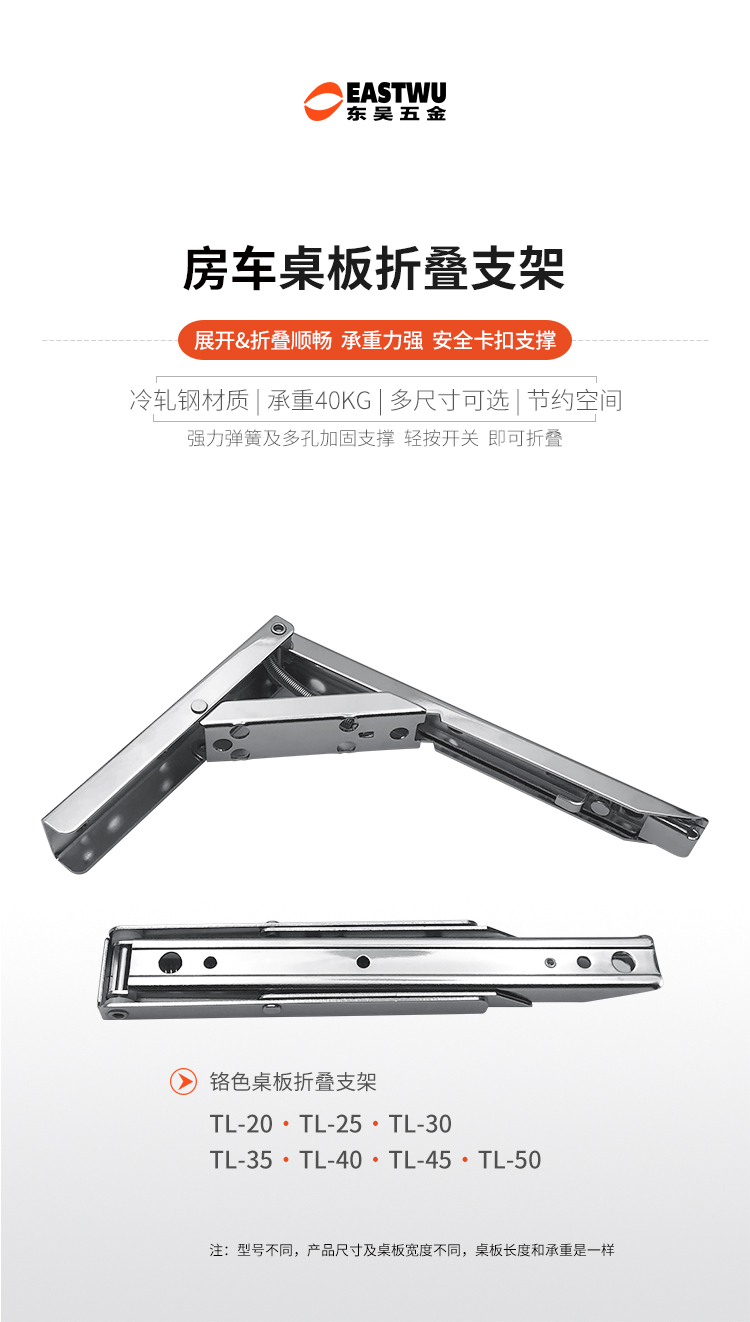 ·材質(zhì):冷軋鋼 承重40kg 7個長短尺寸可選 桌板寬度根據(jù)產(chǎn)品的長短不同而不同 桌板長度300-1000mm 開關(guān)順暢 節(jié)約空間