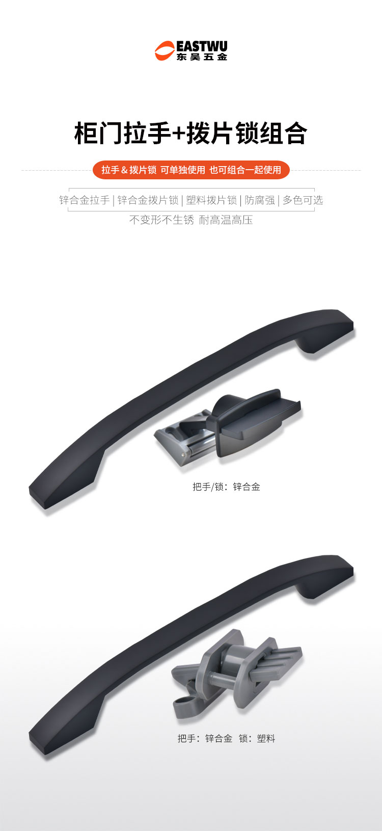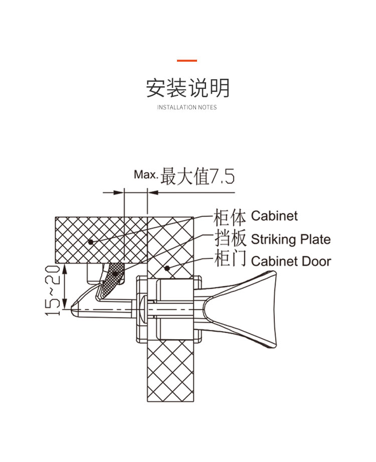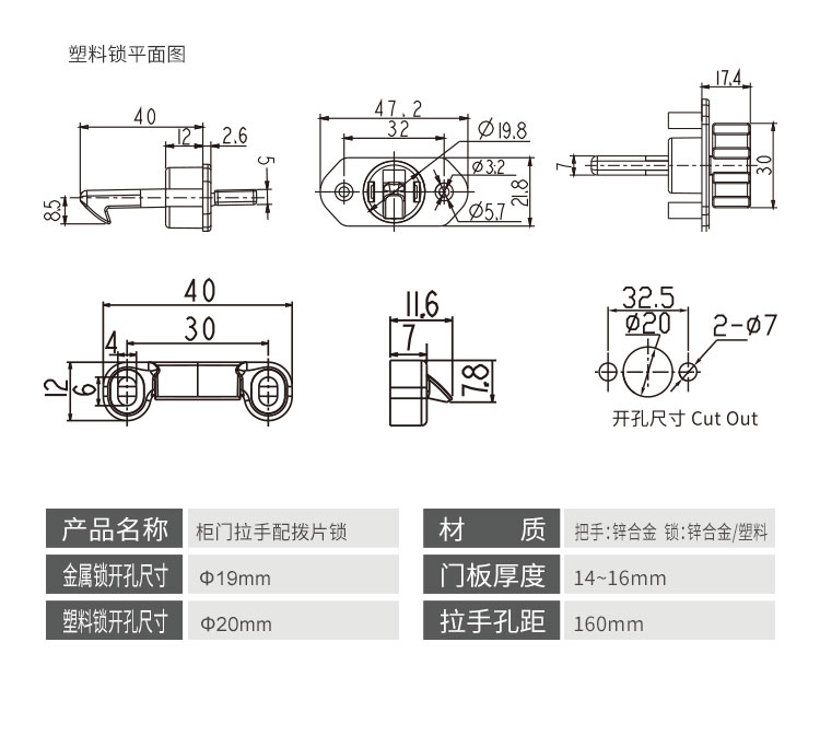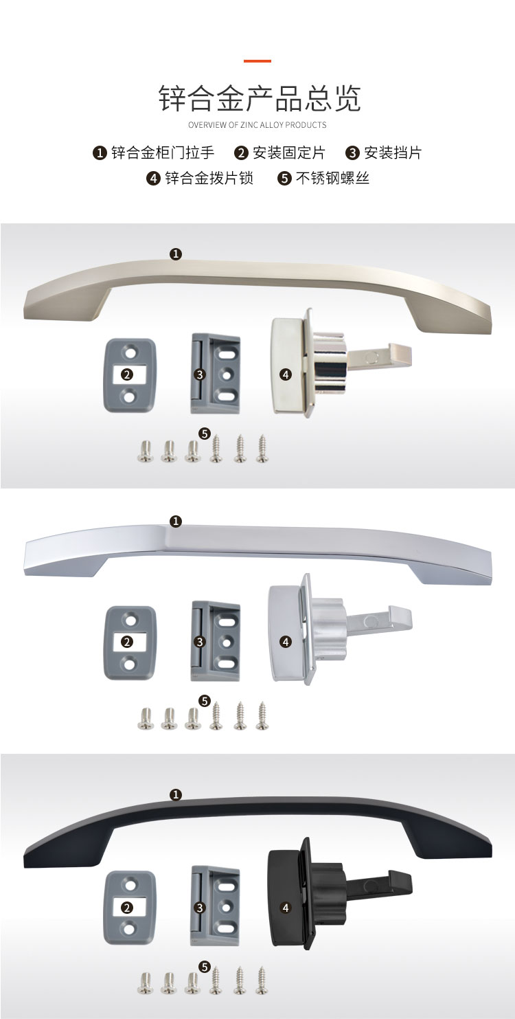 柜門拉手可配塑料搭扣鎖或金屬搭扣鎖,拉手和金屬搭扣鎖顏色可選,開孔尺寸?19mm 開關(guān)輕盈,手感舒適,外觀漂亮