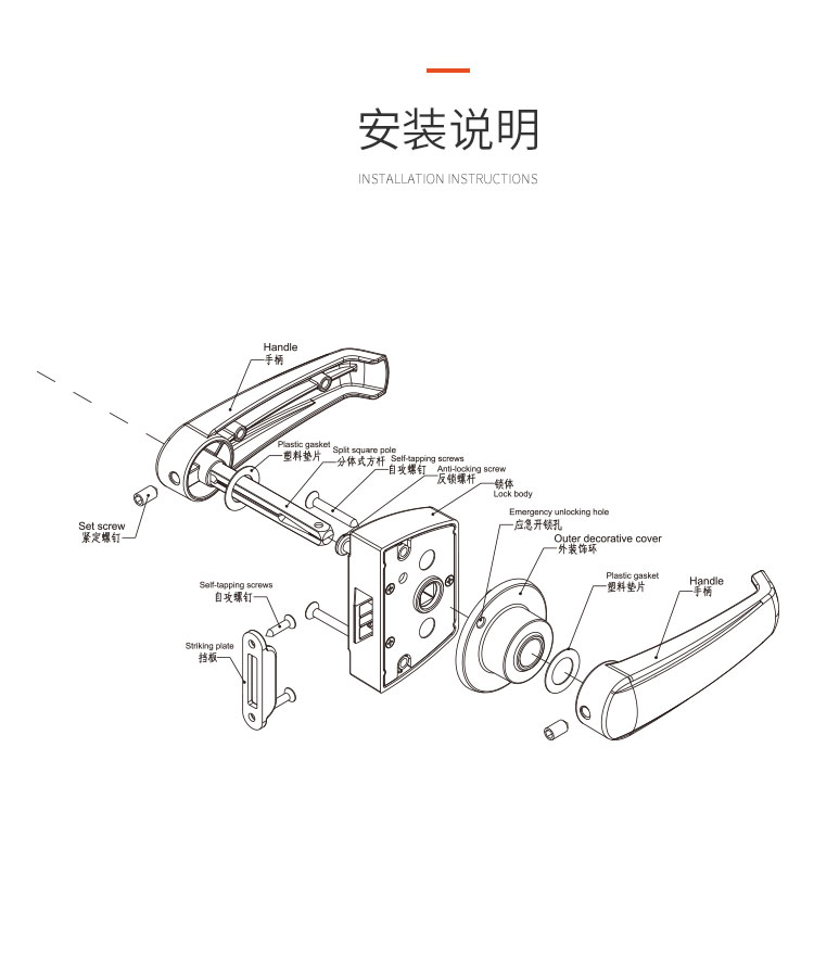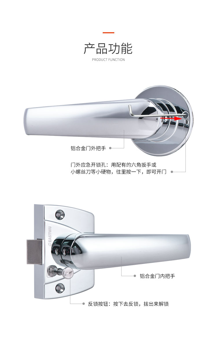 鋁合金&鋅合金洗手間門鎖 顏色可選 分體式方桿可選,長(zhǎng)度不同,適用門厚也不同,開關(guān)輕盈可靠,帶反鎖開關(guān)與應(yīng)急開鎖孔 1鎖配2條長(zhǎng)鎖桿