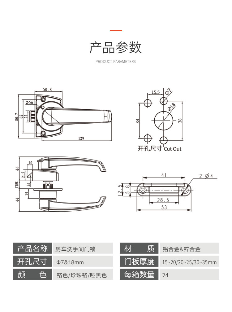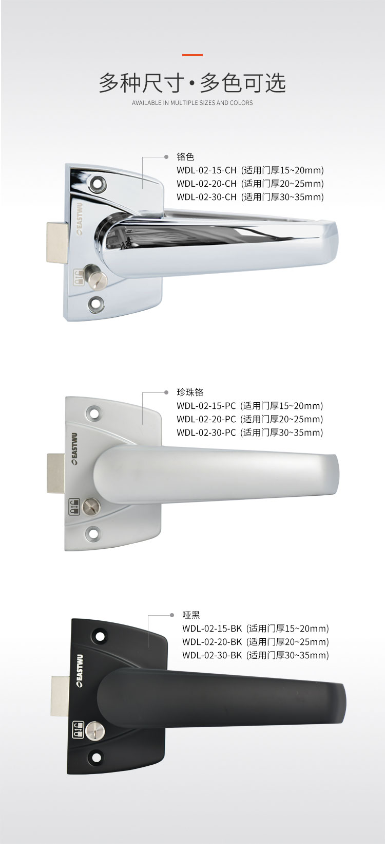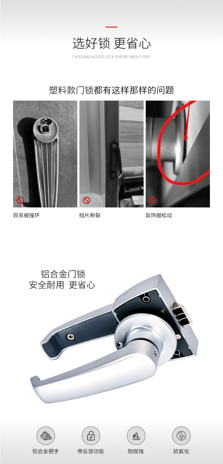 鋁合金&鋅合金洗手間門鎖 顏色可選 分體式方桿可選,長(zhǎng)度不同,適用門厚也不同,開關(guān)輕盈..